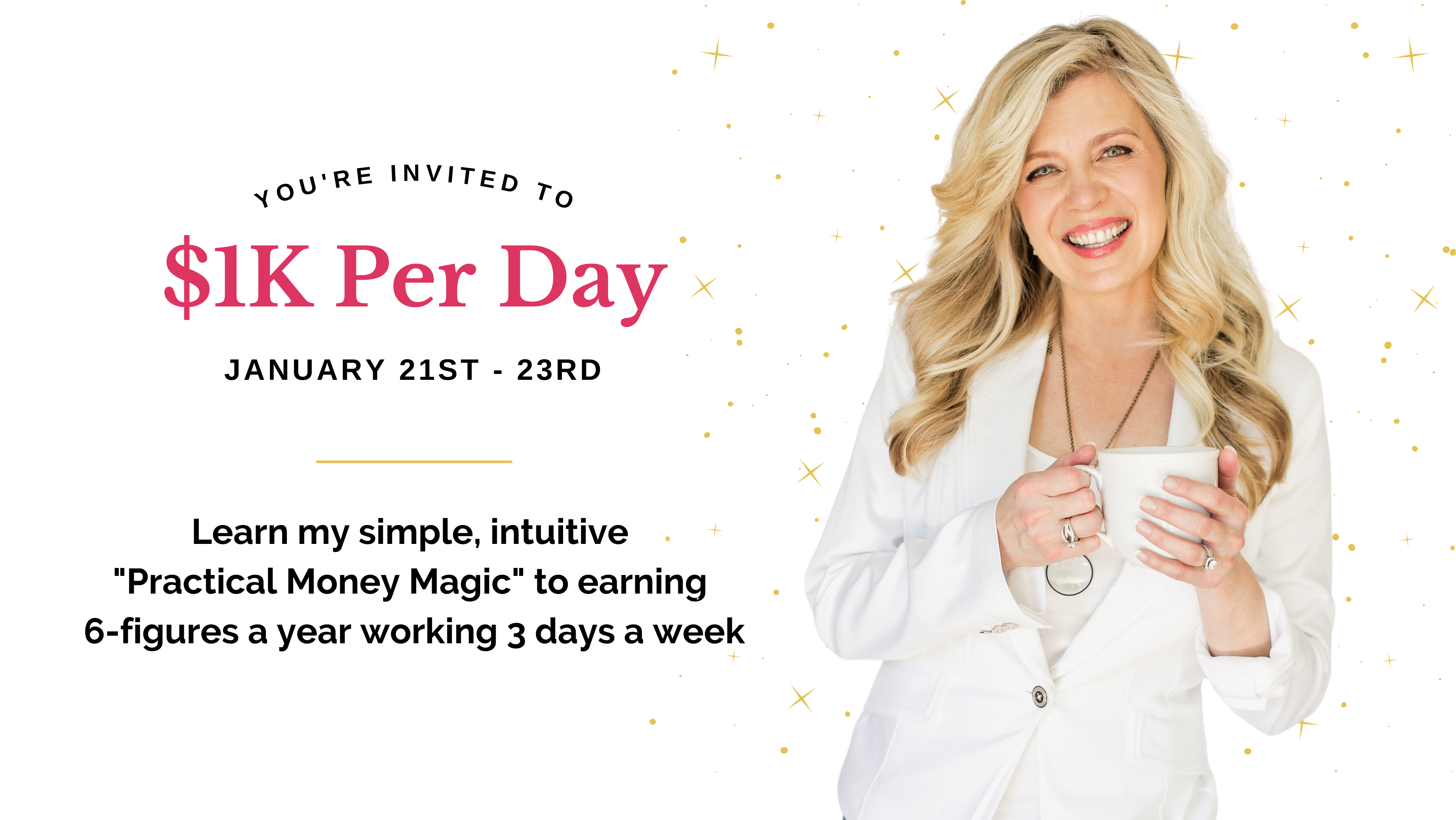 $1K Per Day was designed to help overworked intuitive business owners, healers, and coaches learn to earn more, work less, and use their intuitive gifts to run their businesses with more ease.